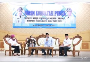 Sementara itu, Bupati Kabupaten Tanjung Jabung Barat H. Anwar Sadat, M.Ag dalam sambutannya sampaikan bahwa pelaksanaan forum konsultasi publik RKPD ini adalah salah satu tahapan untuk merumuskan rencana pembangunan tahunan dengan pendekatan partisipatif, yaitu dengan melibatkan seluruh Kepala Perangkat Daerah dan pemangku kepentingan pembangunan dari berbagai unsur Pemerintah dan masyarakat.