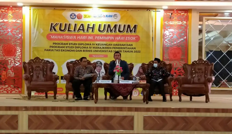 Kuliah umum ini bertajuk “Mahasiswa Hari Ini, Pemimpin Hari Esok” di aula Rektorat lantai III Universitas Jambi.