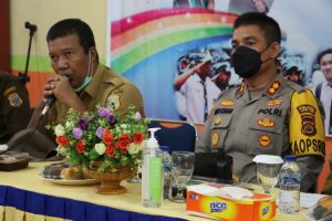 SUMATERADEFACTO.COM | MUARA SABAK – Bersama Kepala Kepolisian Resor Tanjab Timur AKBP Andi Muhammad Ichsan Usman, SH. SIK Bupati Romi Hariyanto adakan Lounching GERMAS (Gerakan Masyarakat Hidup Sehat) dengan cara  menghimbau dan melayani Siswa/i umur 6 s/d 11 tahun  di SDN.61  Kel. Talang Babat Kec. Muara Sabak Barat untuk di vaksinasi Covid-19, Senin, 17 Januari 2022.