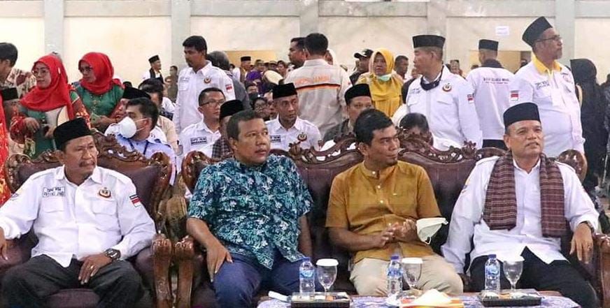 HUT dan halal bihalal hari ini tidak hanya dihadiri warga Minang yang ada di Tanjabtim. Seluruh perwakilan IKM kabupaten dan kota dalam provinsi Jambi tampak ikut hadir. Bupati Romi Hariyanto memasuki arena acara bersama para tokoh Minang itu.