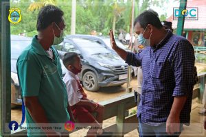 Muara Sabak, SDF – Bupati Tanjung Jabung Timur H. Romi Hariyanto, SE tinjau pelaksanaan vaksinasi pelajar di SD N 123 Desa Teluk Majelis Kecamatan Kuala Jambi, Selasa (22/2/22).