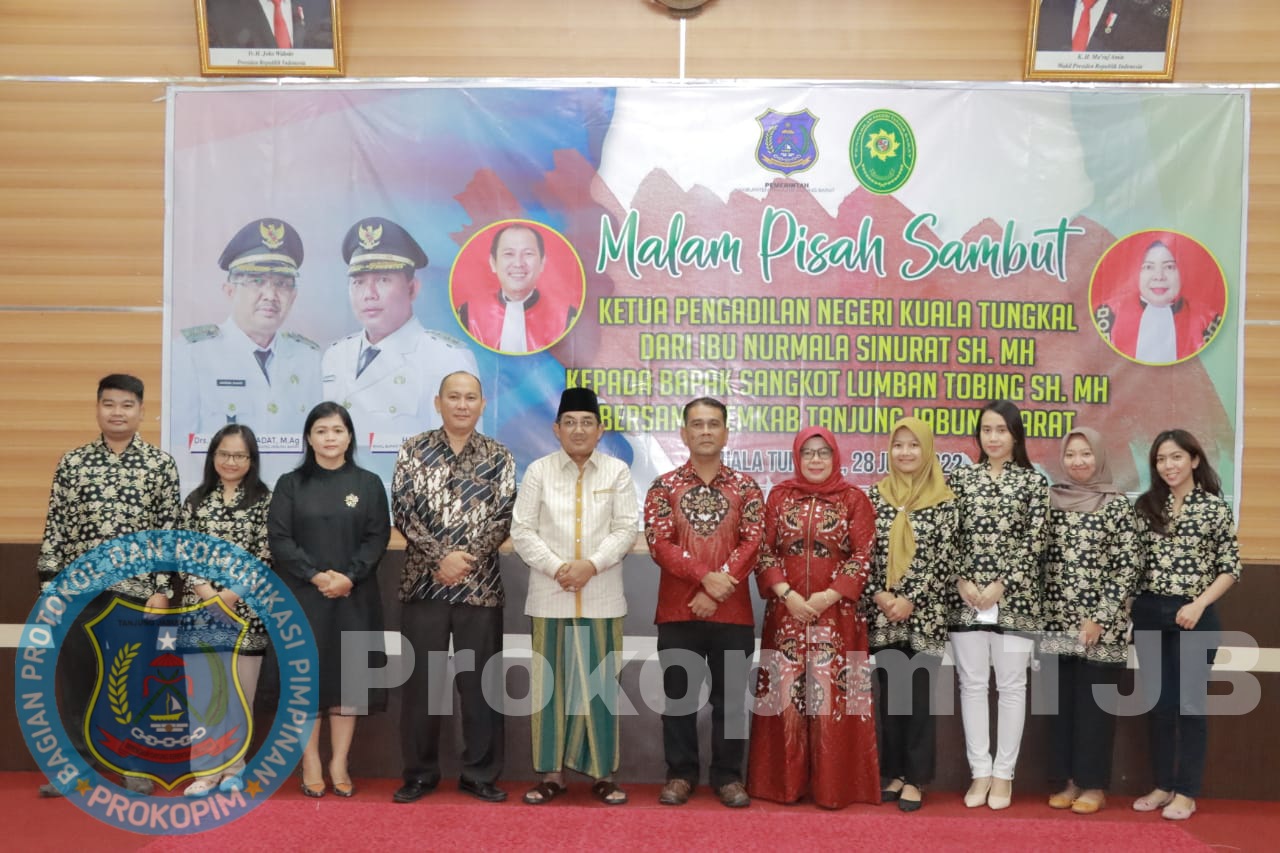 Pemerintah Kabupaten Tanjung Jabung Barat menggelar Malam Pisah Sambut Ketua Pengadilan Negeri Kuala Tungkal dari ibu Nurmala Sinurat SH. MH kepada bapak Sangkot Lumban Tobing SH. MH, acara digelar di rumah Dinas Bupati, (28/06).