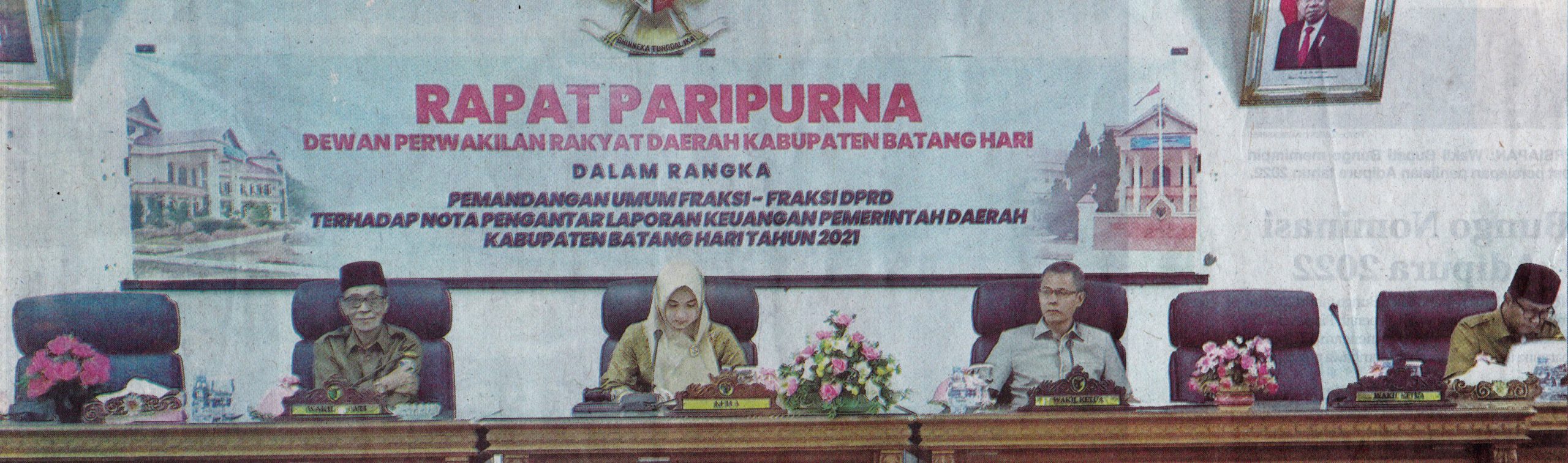 Dewan Perwakilan Rakyat Daerah (DPRD) Kabupaten Batanghari, gelar Rapat Paripurna dalam Rangka Pemandangan Umum Fraksi-fraksi DPRD terhadap Nota Pengantar Laporan Keuangan Pemerintah Daerah Kabupaten Batanghari Tahun Anggaran 2021, yang berlangsung (6/6).
