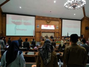 Sidang paripurna ini dipimpin langsung oleh Wakil Ketua DPRD Kabupaten Muaro Jambi, Ahmad Haikal dan dihadiri oleh puluhan anggota DPRD Kabupaten Muaro Jambi.