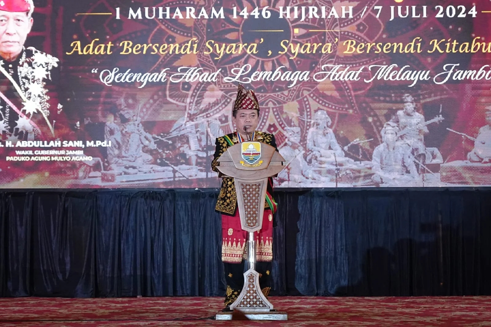 Gubernur Jambi Dr. H. Al Haris, S.Sos., MH., mengapresiasi peran tokoh-tokoh adat yang telah berkomitmen membesarkan Lembaga Adat Melayu Jambi sehingga semakin maju dan berkembang. Hal ini disampaikan Gubernur pada Puncak Hari Adat Melayu Jambi Tahun 2024, bertempat di Abadi Convention Center (ACC) Kota Jambi, Minggu (07/07).