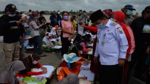 SUMATERADEFACTO.COM | JAMBI – Perayaan Hari Ulang Tahun (HUT) ke 65 Provinsi Jambi 6 Januari 2022, diwarnai perlombaan melukis sungai batanghari. Perlombaan melukis sungai batanghari ini diikuti 200 siswa sekolah dasar (SD) se Provinsi Jambi.