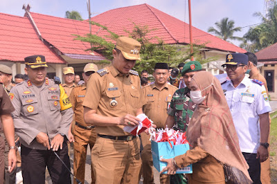 Pj Bupati Muaro Jambi Bachyuni Membagikan Ribuan Bendera Merah Putih
