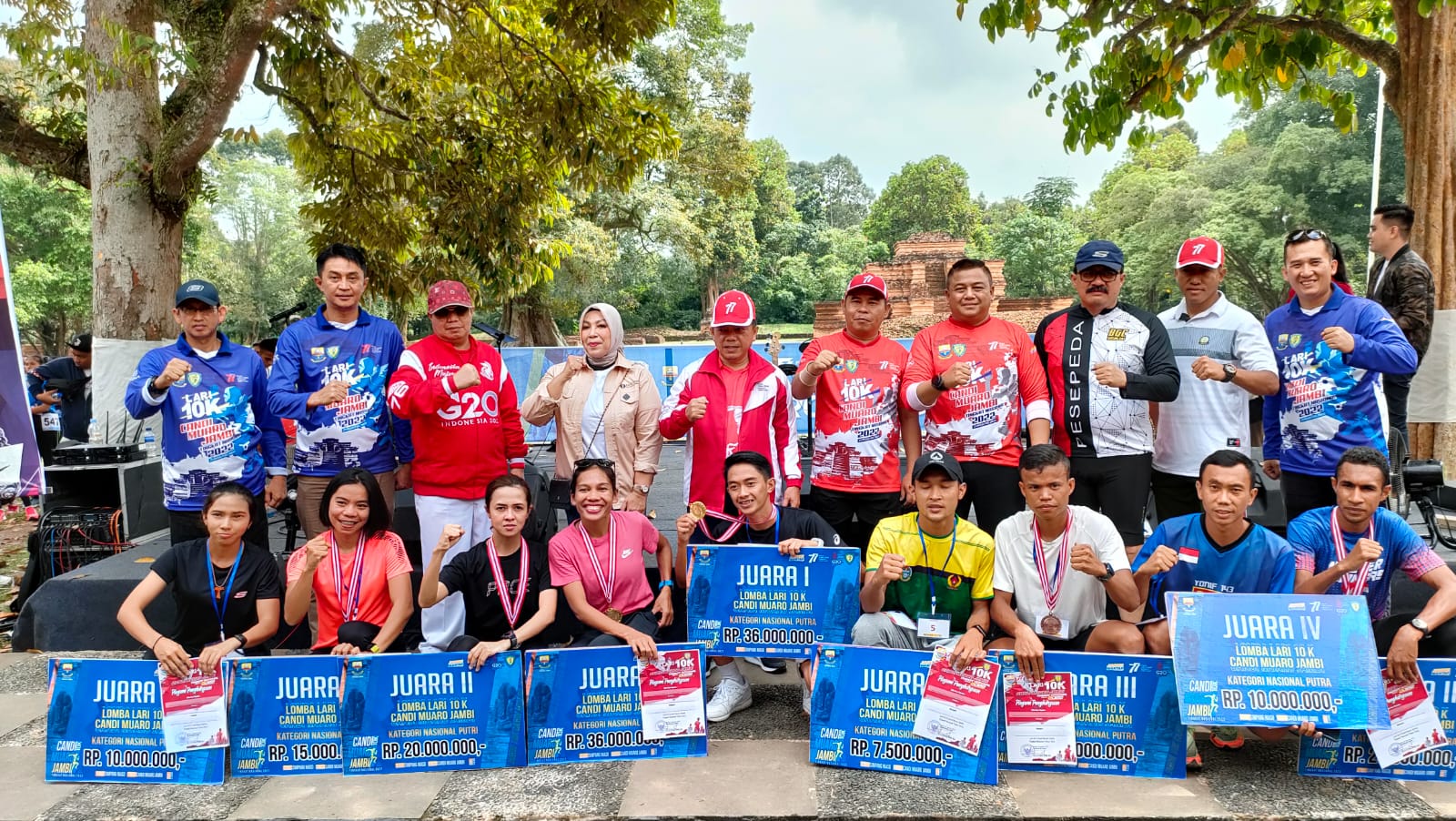 Pj Bupati Muaro Jambi Bachyuni Deliansyah menghadiri acara lomba lari maraton 10K tingkat nasional di Candi Muaro Jambi.