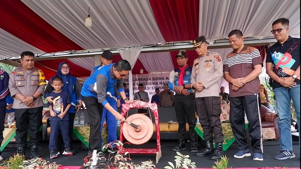 Penjabat Bupati Muaro Jambi Bachyuni Deliamsyah, SH., MH. membuka secara resmi kegiatan Olimpiade Olahraga Siswa Nasional (O2SN) Festival Lomba Seni Siswa Nasional (FLS2N) dan Pekan Kreatifitas dan Prestasi Siswa ( PKPS) Jenjang Sekolah Dasar (SD) dan Sekolah Menengah Pertama (SMP), Tingkat Kabupaten Muaro Jambi, ditandai dengan pemukulan gong, di lapangan Glora Petaling Jaya, Selasa (14/5).