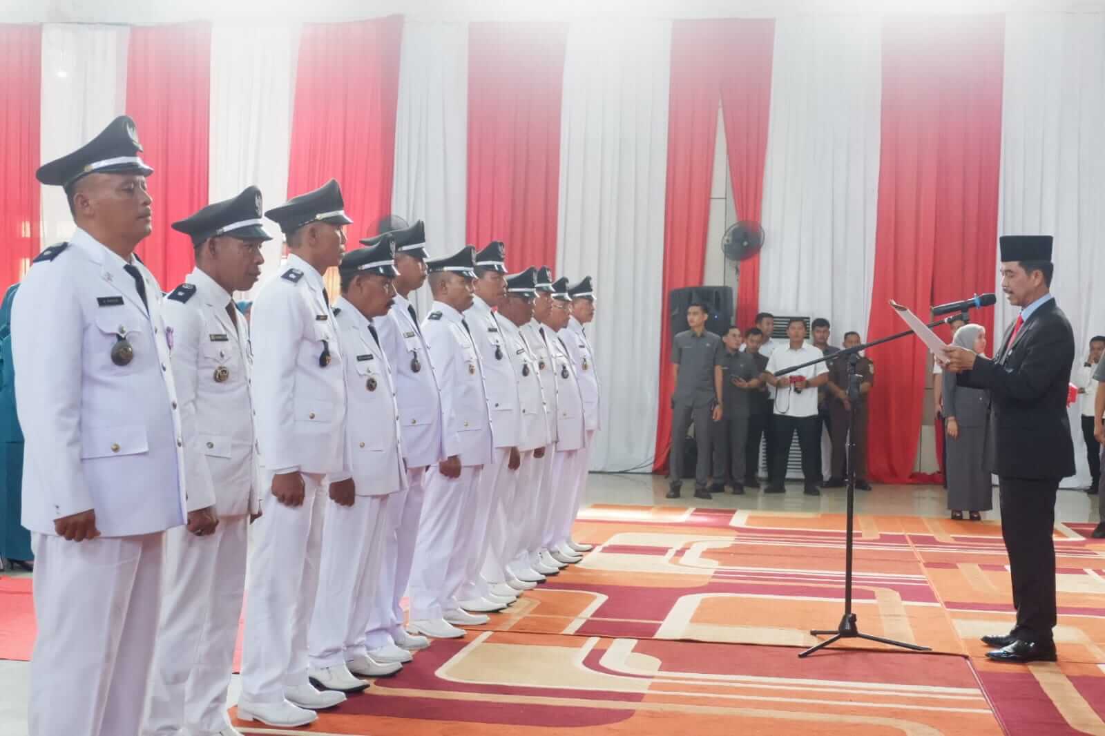 Acara tersebut diawali dengan pengukuhan oleh Pj. Bupati Muaro Jambi Raden Najmi , dilanjutkan penyerahan SK kepada masing-masing kepala desa.