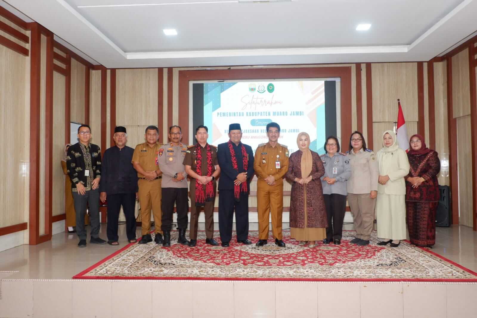 Penjabat Bupati Muaro Jambi Drs. Raden Najmi menyambut langsung kunjungan silahturahmi Kepala Kejaksaan Negeri Muaro Jambi Heru Anggoro, SH., MH dan Ketua Pengadilan Agama Sengeti Dr. M. Yusuf, SH.I., MH di Aula Rumah Dinas Bupati.