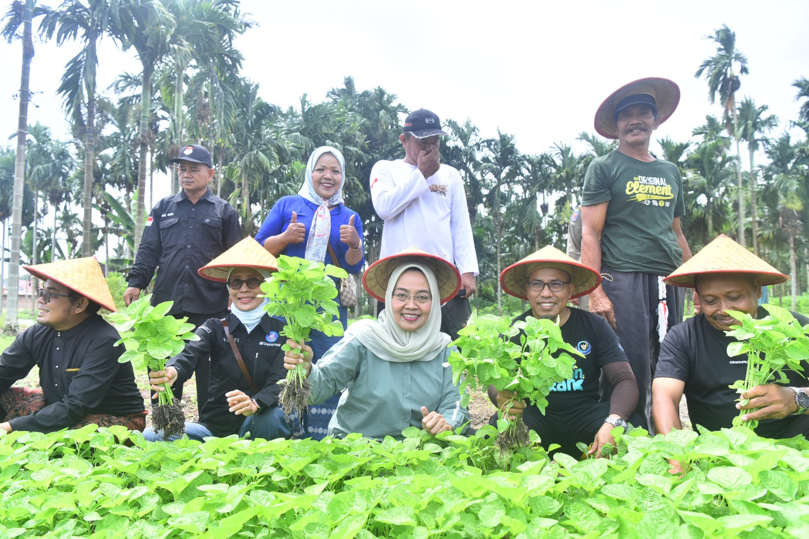 Pj Wali Kota Jambi bersama rombongan berkesempatan turut memanen beberapa komoditi hasil pertanian, seperti sayur kemangi, selada dan bayam.