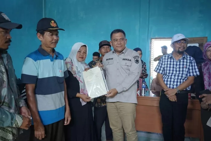 Sekretaris Daerah (Sekda) Budhi Hartono menyerahkan sertifikat tanah gratis kepada masyarakat di Muarojambi.