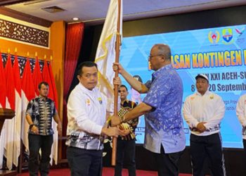 SUMATERADEFACTO.ID | Prov. Jambi Gubernur Al Haris melepas kontingen Provinsi jambi untuk mengikuti ajang PON XXI Aceh-Sumut.. Al Haris juga memberikan tanda pelepasan kontingen ...