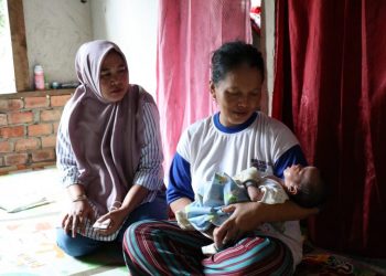 Ketua TP PKK Tanjab Timur Wirdayanti Menjenguk Bayit Penderita Kelainan Usus Besar