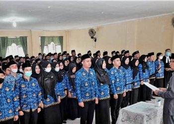SUMATERADEFACTO.COM | Kab. Tanjabbar Sekretaris Daerah (Sekda) Ir. H. Agus Sanusi, M.Si pimpin langsung pengambilan Sumpah dan Janji Pegawai Negeri ...