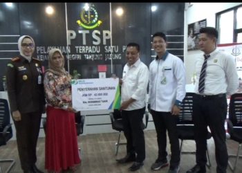 Sekda Tanjab Timur Bersama BPJS Ketenagakerjaan menyerahkan Santunan Priyani Ahli Waris Almarhum M.Tahir