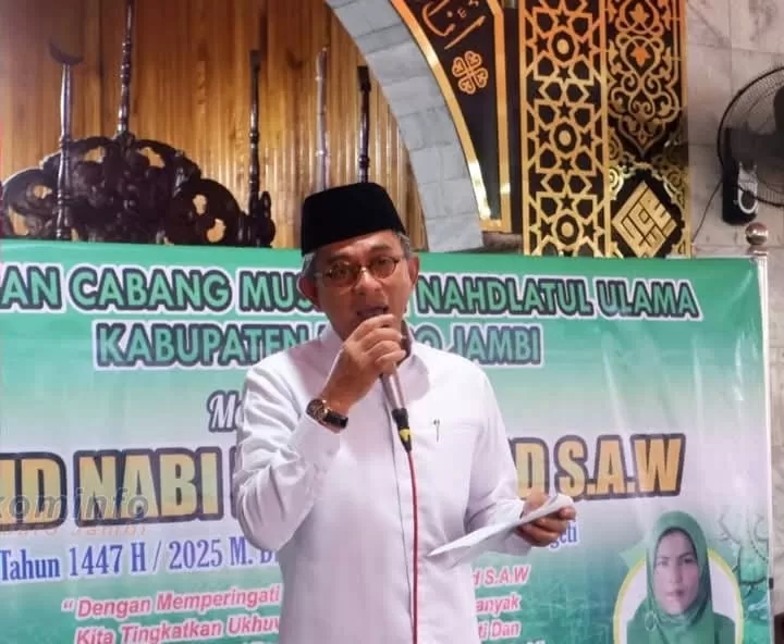 Wakil Bupati Muaro Jambi menyampaikan apresiasi setinggi-tingginya kepada masyarakat Kelurahan Sengeti atas terselenggaranya peringatan Maulid Nabi Muhammad SAW yang berlangsung khidmat serta penuh semangat kebersamaan.