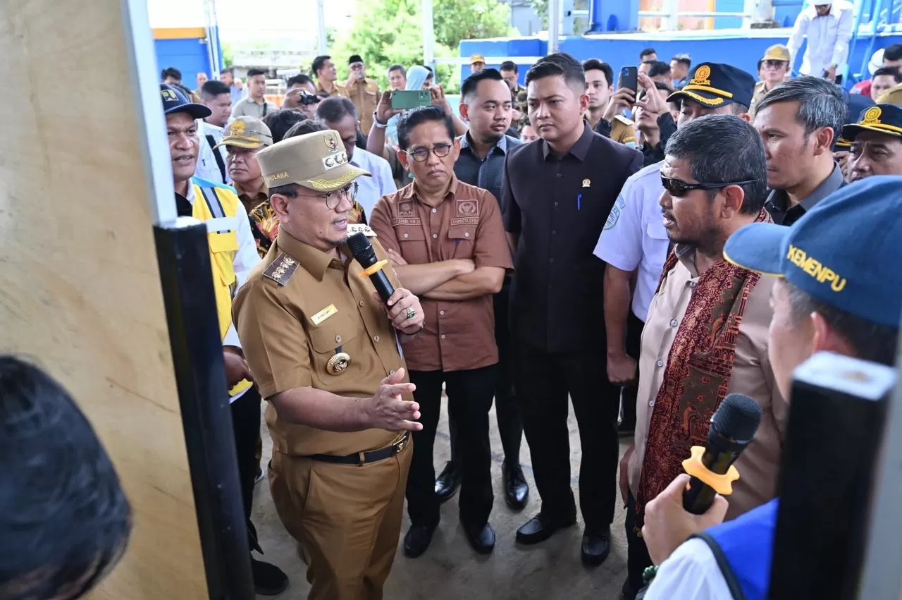 Rombongan inspeksi diawali dengan peninjauan Pintu Pengendali Banjir Sungai Asam, yang selama ini menjadi titik krusial dalam pengendalian banjir di Kota Jambi.