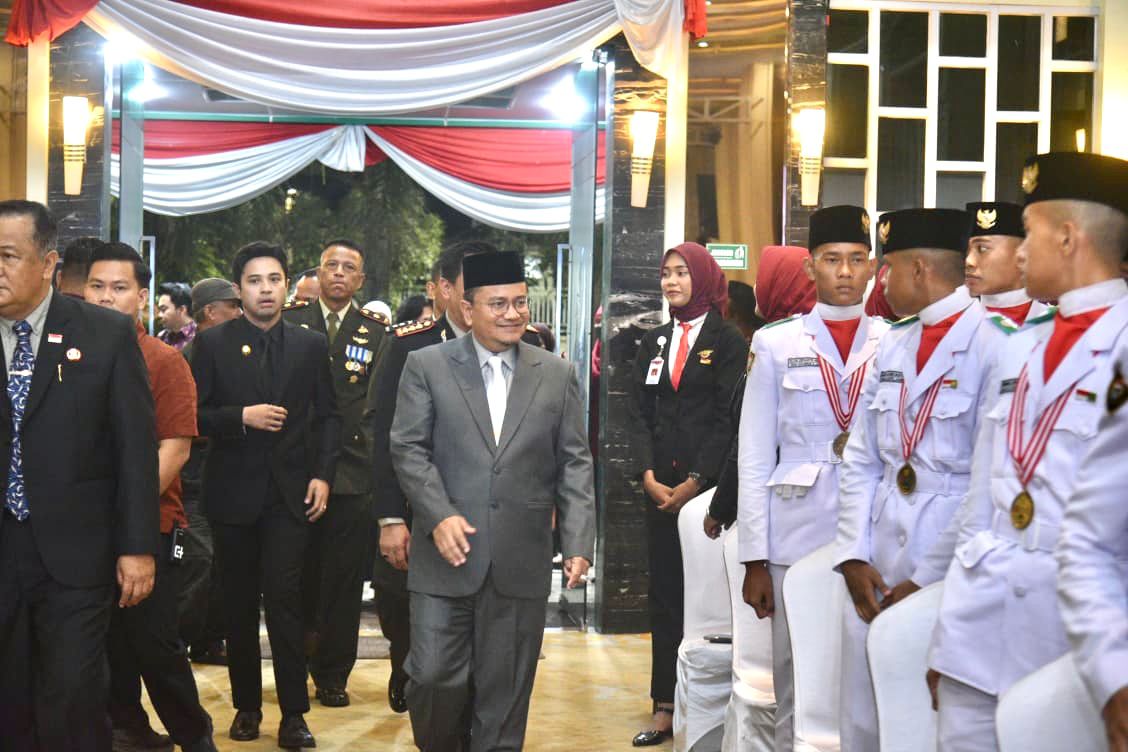Sebagai wujud rasa syukur atas terselenggaranya seluruh rangkaian kegiatan peringatan Hari Ulang Tahun (HUT) ke-80 Kemerdekaan Republik Indonesia di Kota Jambi dengan lancar dan khidmat, Pemerintah Kota (Pemkot) Jambi menggelar jamuan bertajuk “Resepsi Kenegaraan” di Aula Griya Mayang, Rumah Dinas Wali Kota Jambi, Minggu malam (17/8/2025).