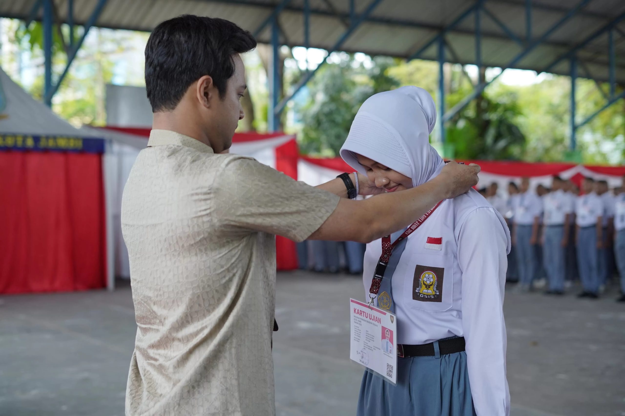 Pada kesempatan itu, secara simbolis Wakil Wali Kota Jambi Diza turut melakukan penyematan tanda peserta kepada 2 orang calon Paskibraka Kota Jambi tahun 2025.